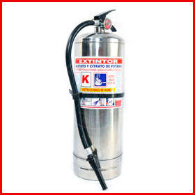 Los Extintores de clase K Diseñados específicamente para incendios de aceites y grasas de cocina, utilizando un agente extintor a base de acetato de potasio. para fuegos de cocina.